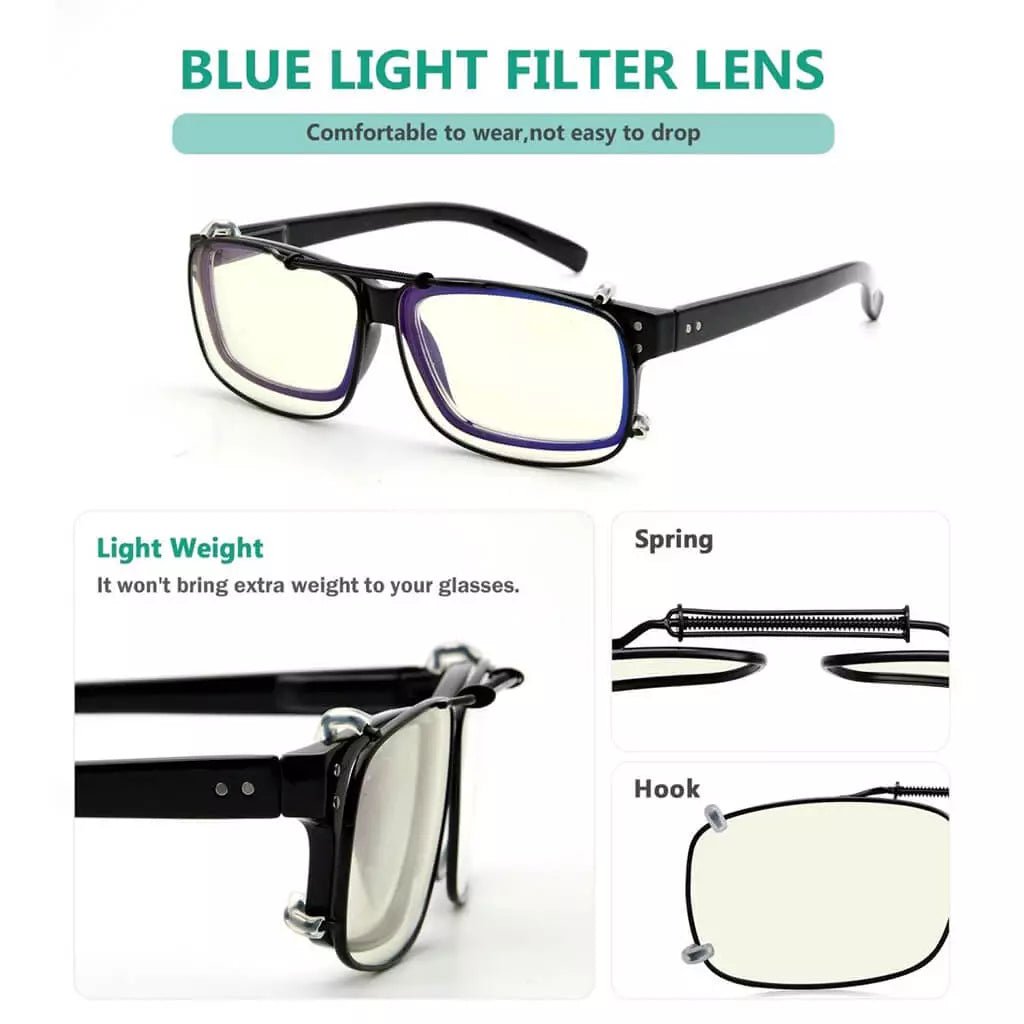 - EYEKEEPER FLIP-UP CLIP-ON BLAULICHT BLOCKIERENDE BRILLE: Blaulichtfilterbrille, einfach hochklappen und auf die Brille aufstecken, ideal zum Arbeiten, Spielen, Surfen auf Computern, Tablets, Smartphones, Fernsehern oder zum Abschwächen von harten LED-Lichtern im Büro.